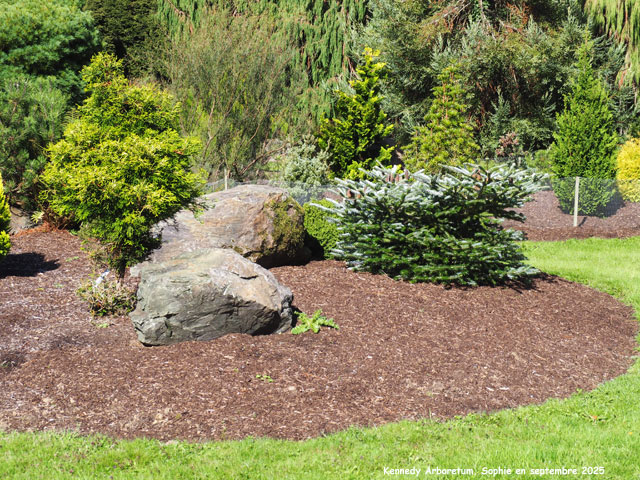 Des espaces didactiques rompent le rythme. Ici, des massifs consacrés aux conifères de croissance lente.