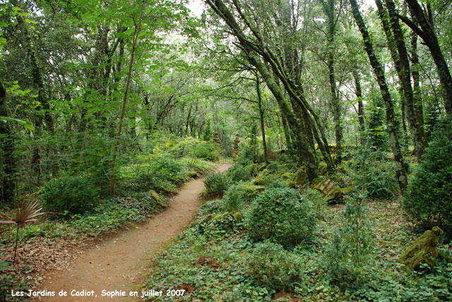 Chênes, chemins, palmiers, cailloux, érables japonais, sources, mousses, .... et l'ombre devient lumineuse!