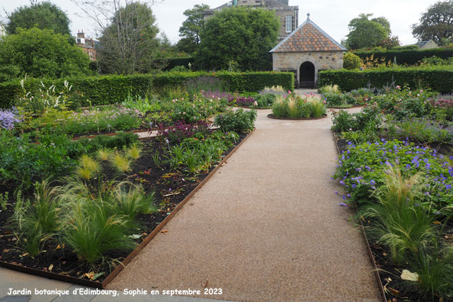 Ce jardin, visité en septembre 2023, venait tout juste d'être terminé. Il reprend un motif de joaillerie, soit un cercle entouré de triangles convergents, inspiré du jardin de Castle of Mey (Ecosse, Caithness), où la reine a passé la plupart de ses vacances enfantines.