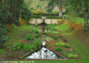 Au Nord de la maison, les jardins se font plus libres et plus ouverts. A l'Ouest des tilleuls (1), une vaste prairie abrite des statues antiques (8) et à l'Est, il y a un verger (9).