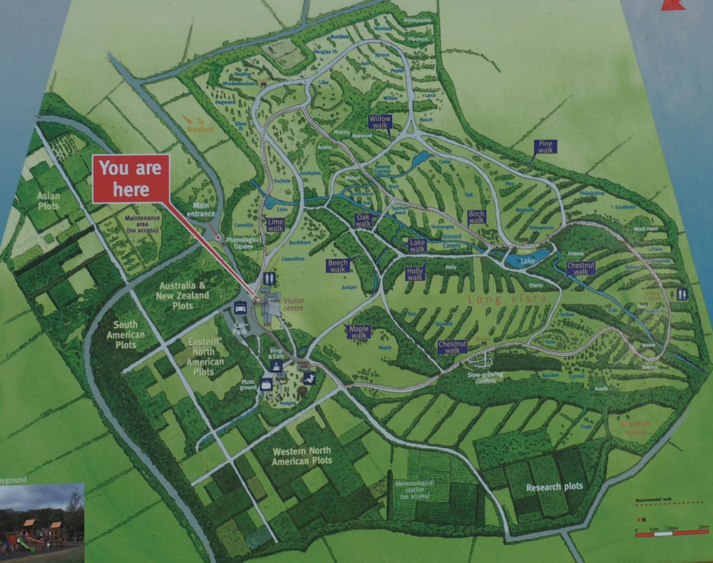 John F. Kennedy est mort assassiné à Dallas le novembre 1963. Son arrière grand-père, Patrick Kennedy (1823-1858) est né à Dunganstown, près de New Ross (Irelande, Comté de Wrexford) et, affamé, a quitté l'Irlande pour Boston en 1849. La nation irlandaise a voulu honorer la mémoire du défunt et de sa famille en créant un Arboretum de 252 ha à 10 min. du berceau familial, soit dans le Sud-Est de l'Irlande. Des fonds issus de dons privés ont rapidement été rassemblés et le parc a été inauguré en 1968. Il occupe un terrain de 252 ha au sommet et sur le flanc Sud de collines, bénéficiant d'un climat maritime et méridional idéal, sans gelées ou presque et sans sécheresses non plus. | ![]() |