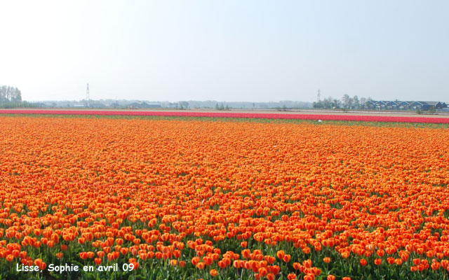 Au printemps, les champs plats qui s'étendent entre La Haye et Haarlem se colorent du feu des tulipes en fleurs..