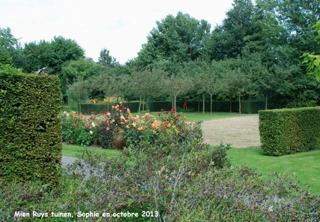 Un vaste gazon, parfois traité en prarie fleurie, est modulé par des haies de hêtres. Jamais elles n'isolent un lieu, mais en se succédant sur des plans différents, elles accentuent la sensation de profondeur.