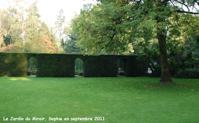 D'étroites ouvertures dans la haie mènent à la roseraie.