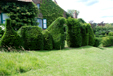 S'il fallait résumer ce jardin d'1,5 ha en un mot, c'est "topiaires" qui convient le mieux. Tout ce qui peut être taillé l'est. Les ifs s'étagent, les buis deviennent berlingots ou piliers, les Lonicera coussins moelleux, les Cyprès de l'Arizona s'éfilent, les aubépines s'arqueboutent, se renflent, moutonnent et se percent d'oculi.
