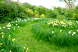 On y voit des vergers remplis de bulbes, des jardins symétriques et réguliers fermés de haies d'aubépines, bordés de buis, traversés de sentiers de briques et ponctuées de topiaires.