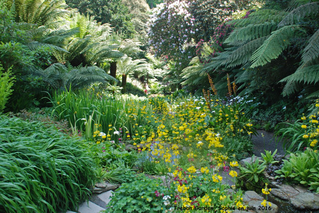 Un ruisseau descend de la colline. Dans sa partie haute, ses berges sont plantées de plantes rivulaires. Des sentiers le traversent à gué.