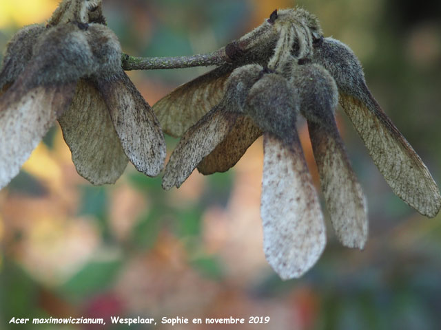 | fruits: | samares disposées à 60° environ, très velues au niveau des graines, mais glabres sur les ailes proprement dites. |