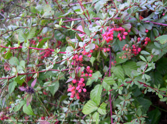 | fruits: | sphérique rouge corail de septembre à novembre. Goût acidulé. |