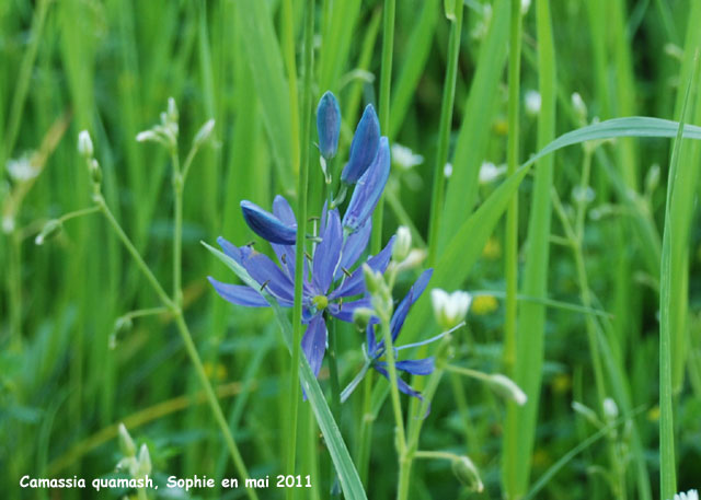| couleur : | bleu variable, de mauve à bleu très clair, voire blanc. Anthères le plus souvent jaunes, mais parfois bleues ou brunes. |