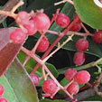 Les fleurs blanc crème, réunies en panicules coniques, s'épanouissent en juin. Elles sont suivies de baies rouges puis noires.